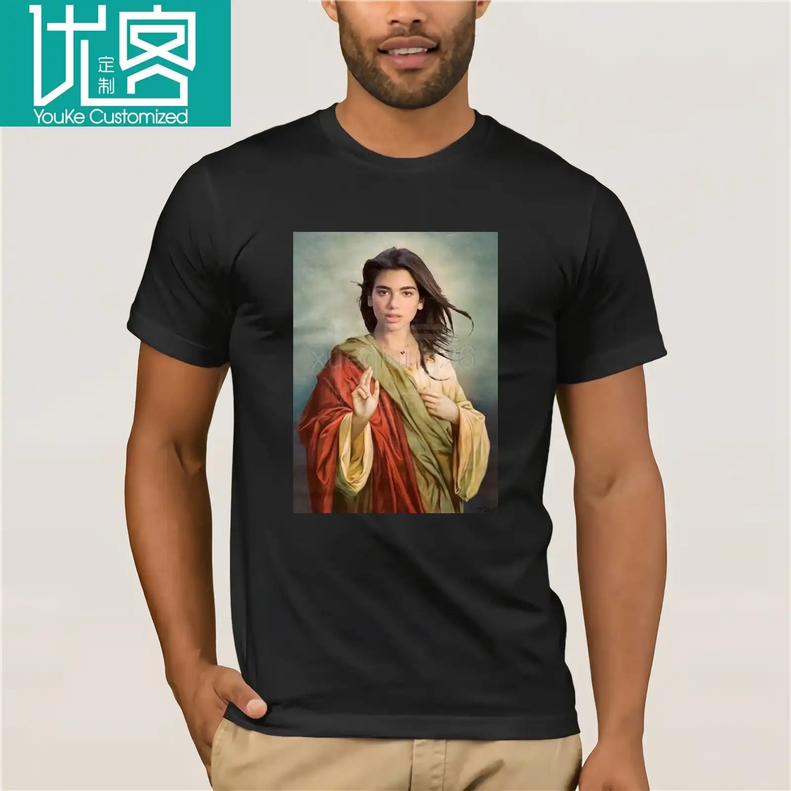 Dua Lipa Standing Woman In White And Black Floral Top Transparent