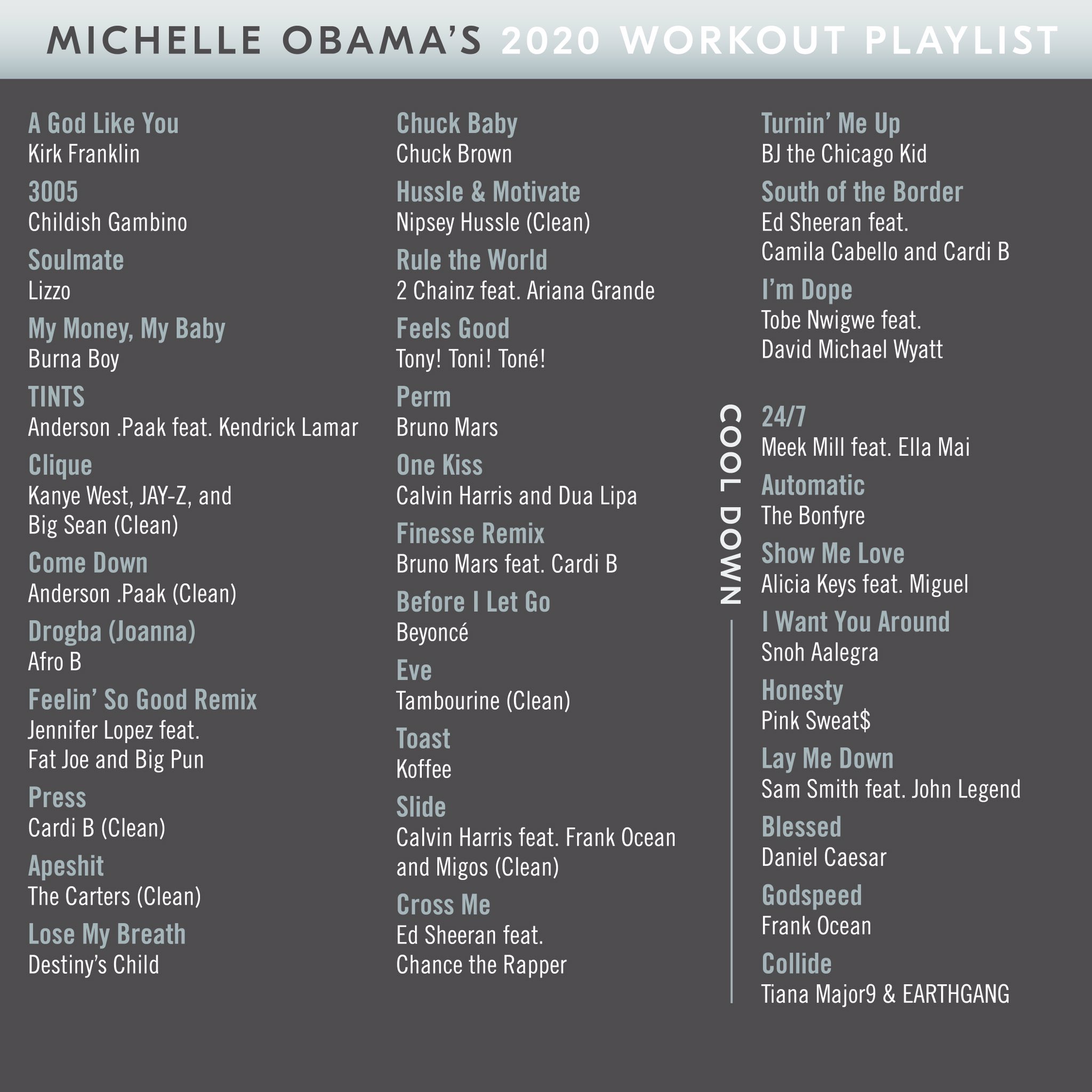 Michelle Obama Shares Her 2020 Workout Playlist Popheads