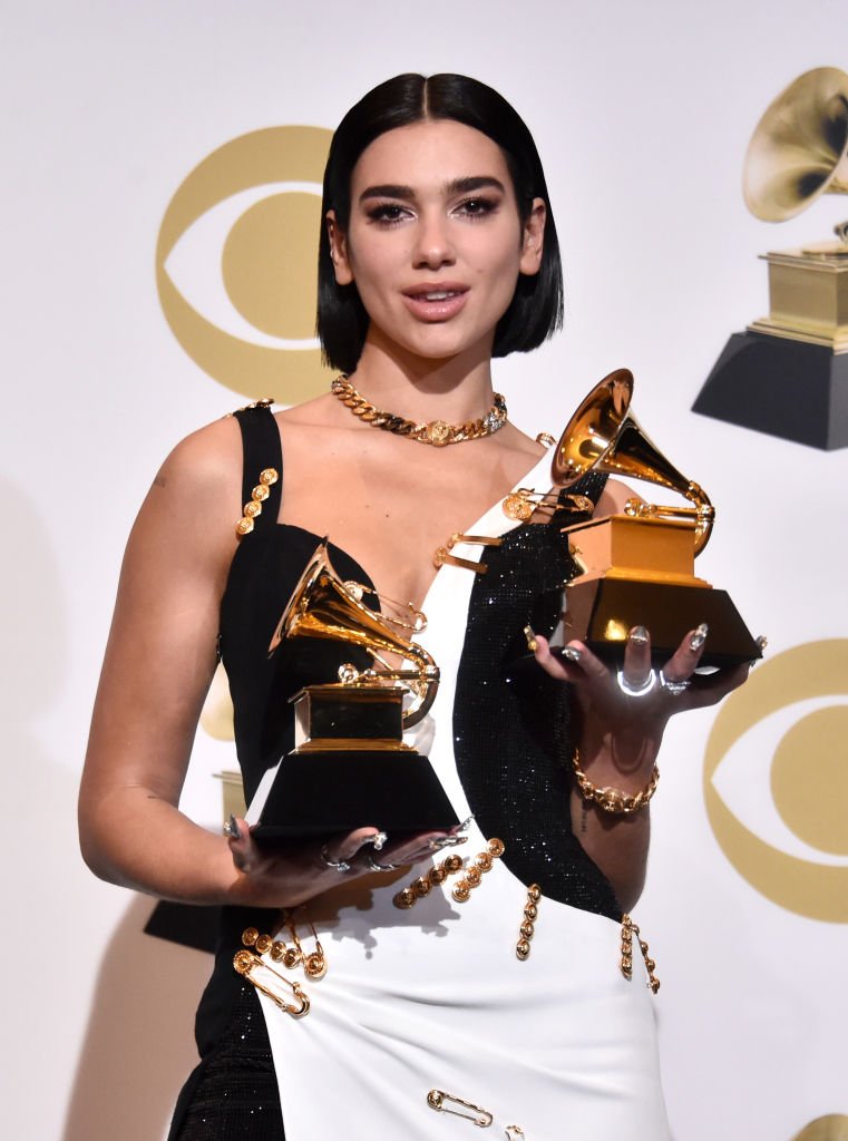 Dua Lipa Wears Atelier Versace Shimmery Pink Cocktail Dress